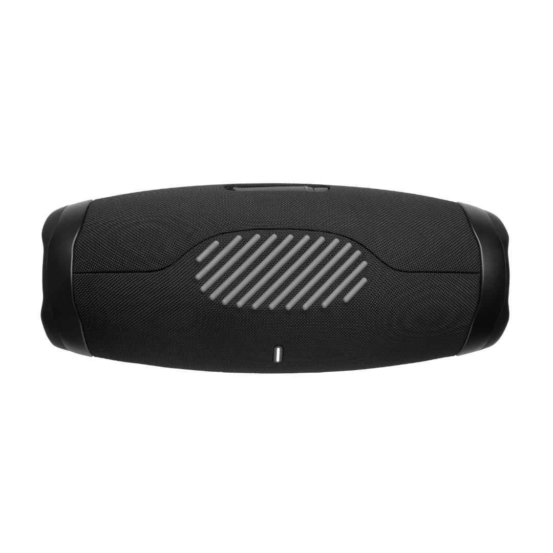 Acabamos de tornar a nossa mais poderosa caixa de som Bluetooth portátil ainda melhor. A silhueta icônica da JBL Boombox 3 tem uma nova e ousada atualização com uma alça de metal resistente e partes em silicone, tampas laterais duplas e tecido exclusivo à prova d’água e à prova de poeira. Ela também foi redesenhada por dentro, acrescentando um novo subwoofer que reproduz graves muito mais profundos e o potente JBL Original Pro Sound, tudo sem qualquer sinal de distorção e até 24 horas de reprodução levam você desde o treino matinal até um fim de noite com seus amigos. E para um som praticamente ilimitado, conecte instantaneamente várias caixas de som com o aplicativo JBL Portable.